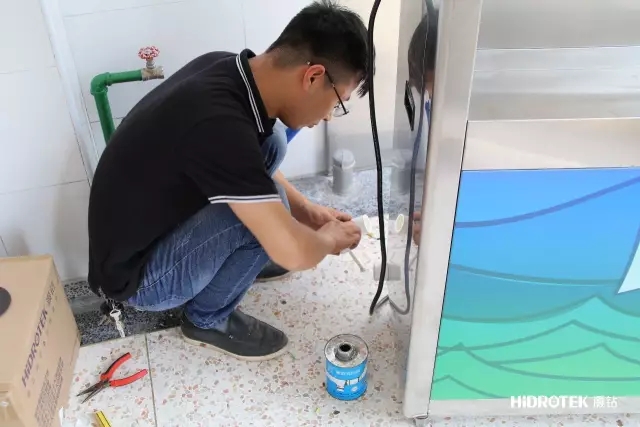 安裝完畢,凈水設(shè)備和背景墻融為一體,希望孩子喜歡。